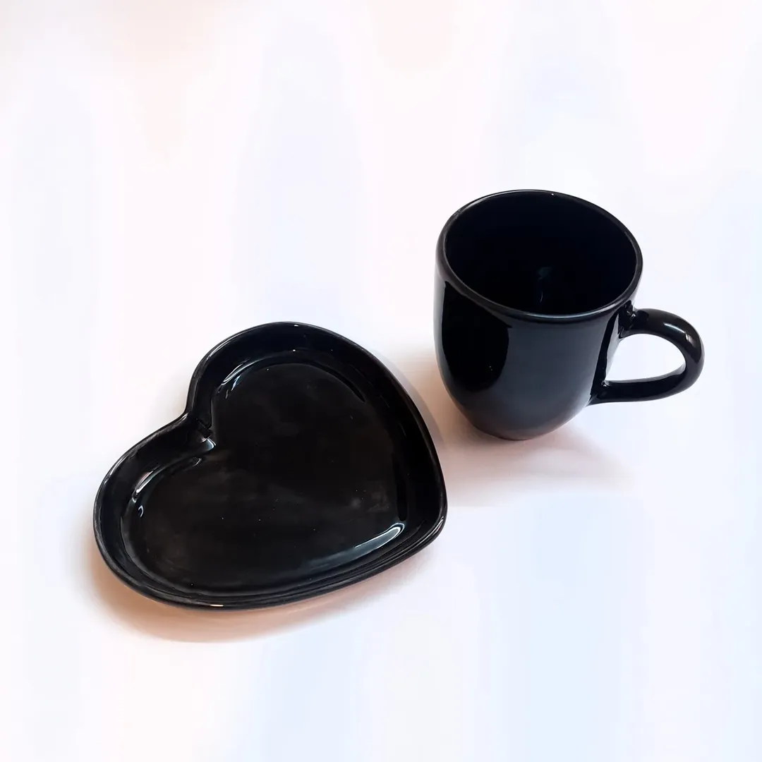 ماگ و زیرماگی سرامیکی مدل قلبی مشکی براق