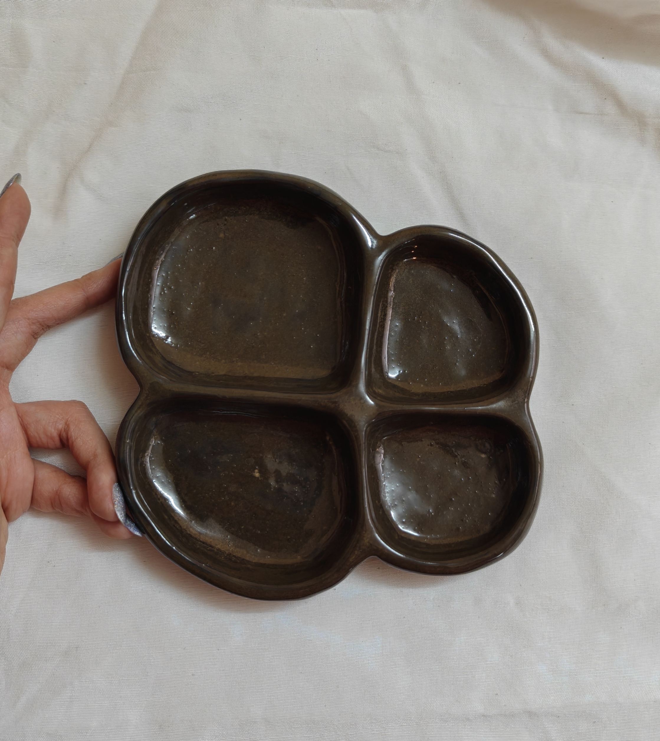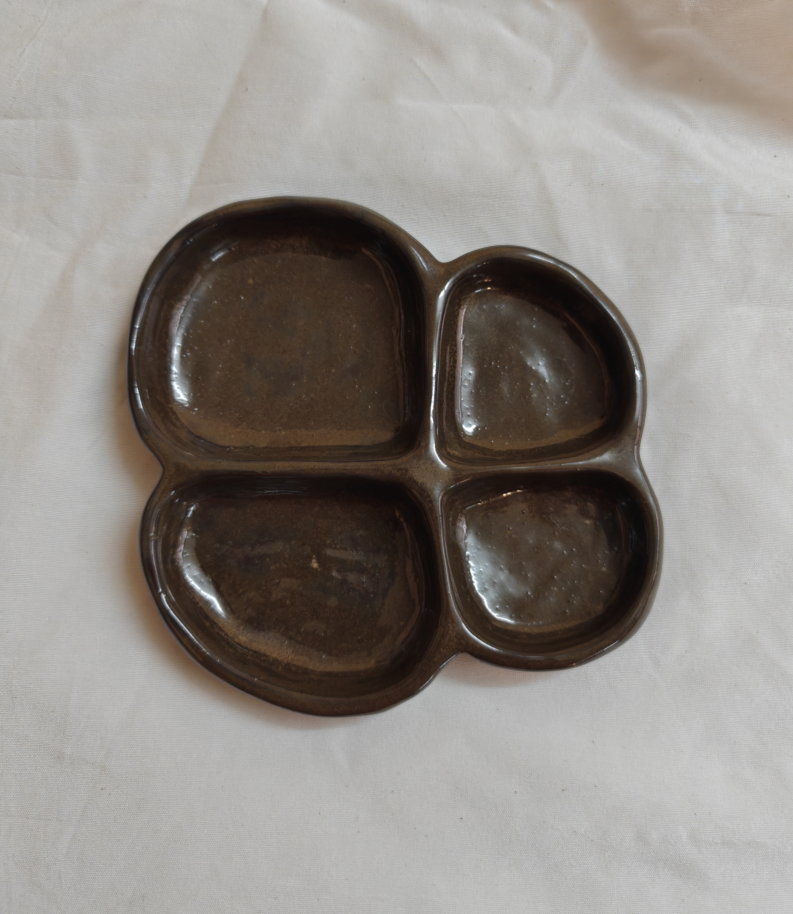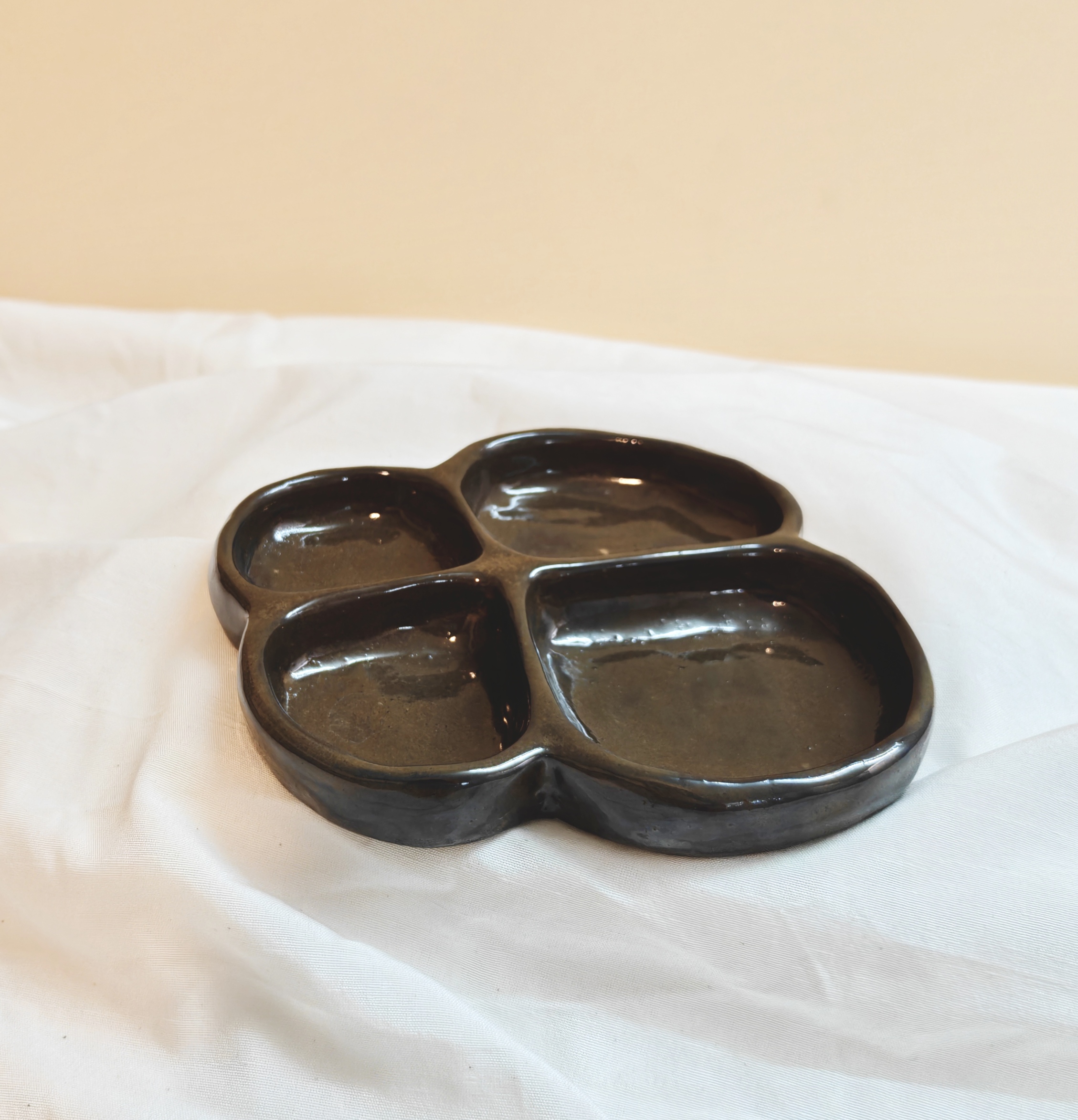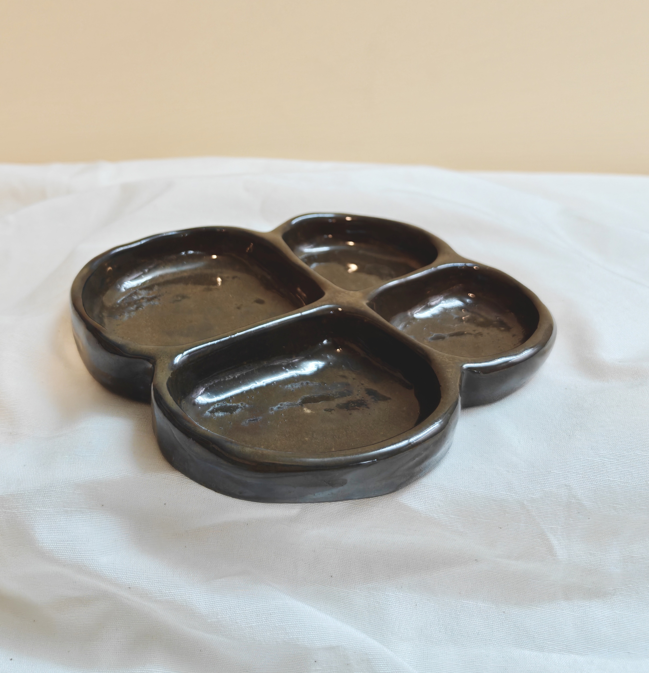 این اردوخوری سرامیکی با فرم آزاد و طراحی دستساز، انتخابی متفاوت برای سرو تنقلات و مزههاست. هر قطعه نتیجه کار دستی بوده و از نظر فرم و رنگ، کاملاً یکتاست.